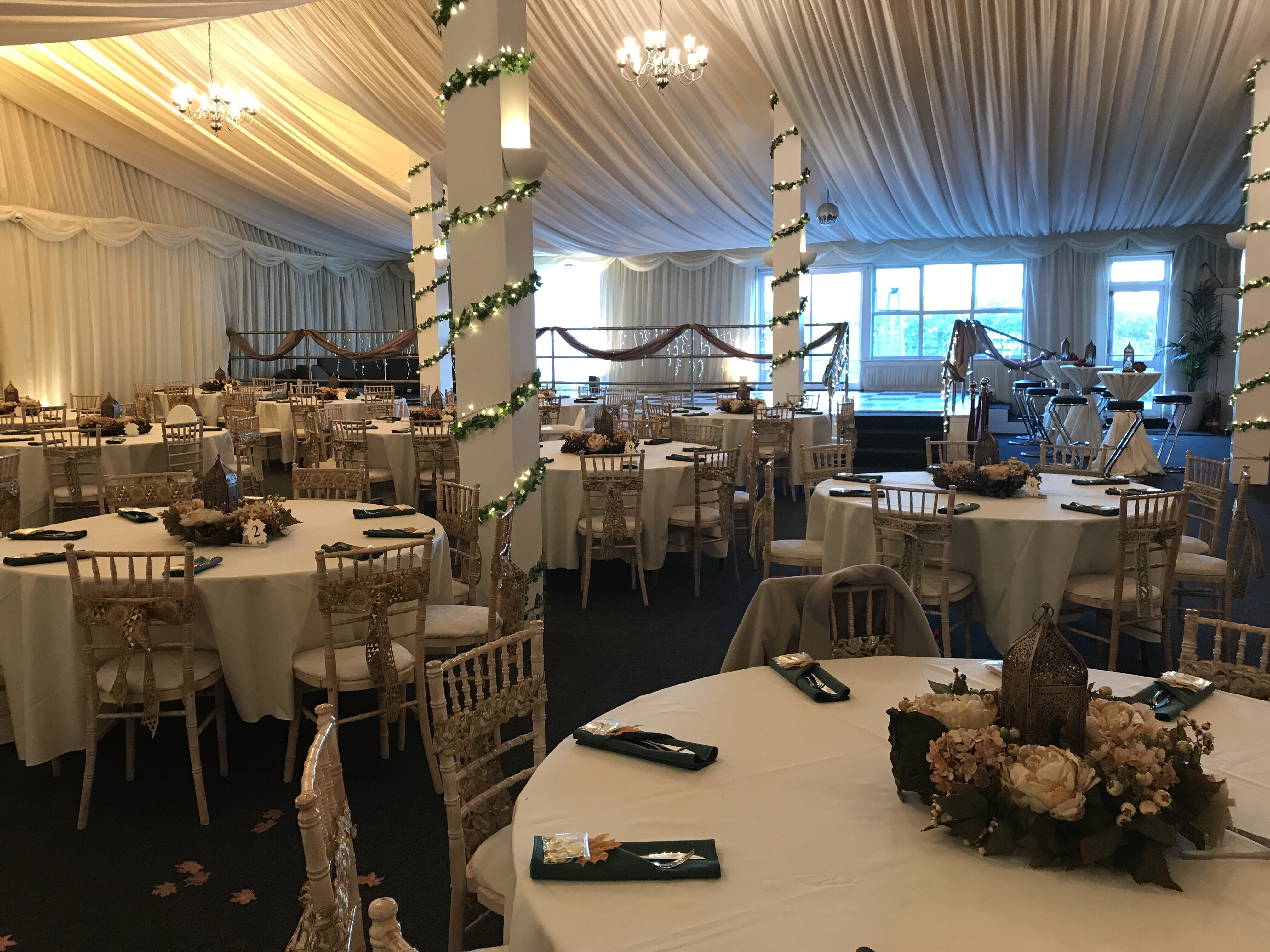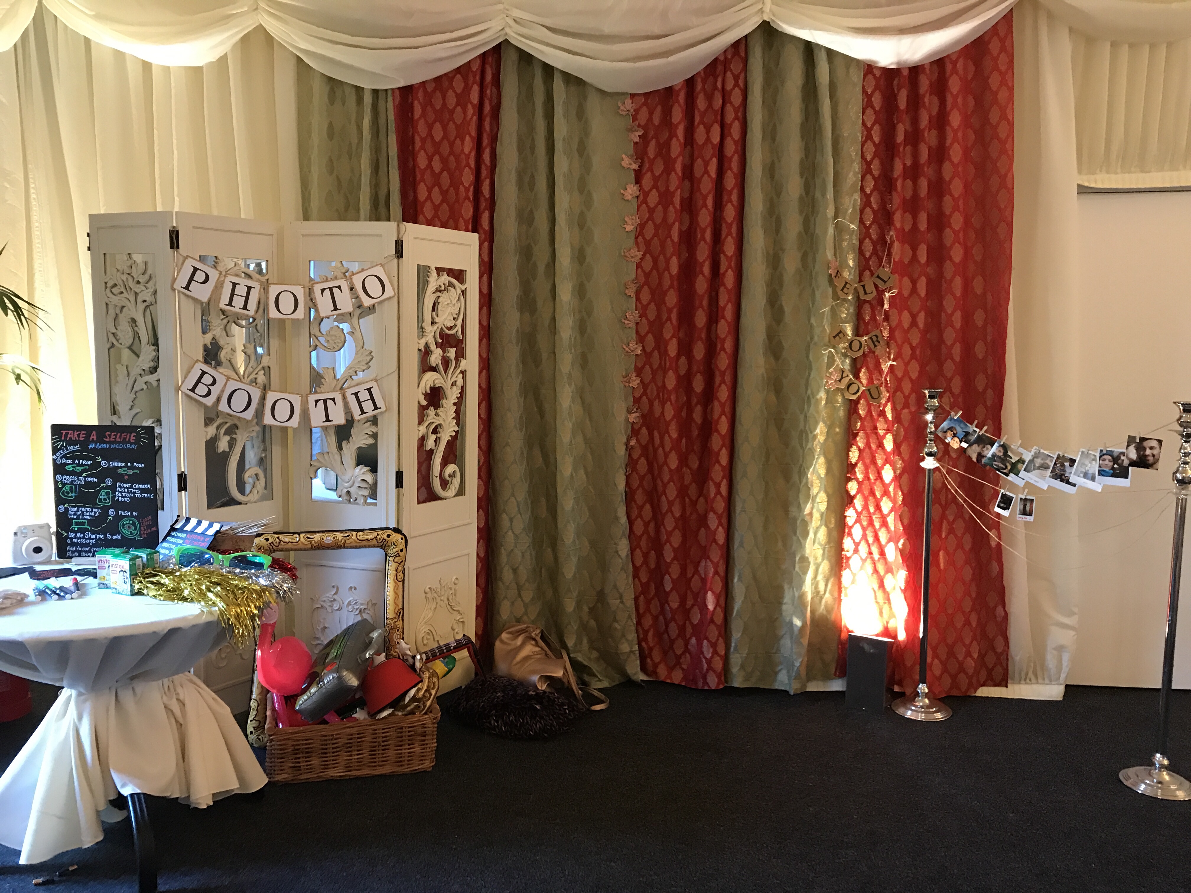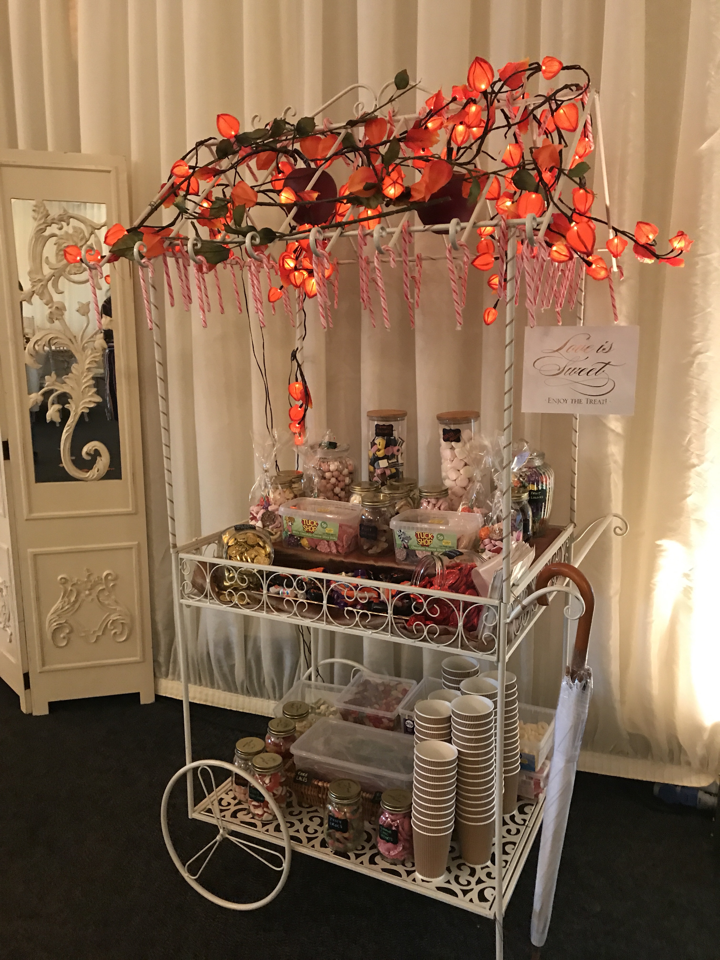The bride had bought everything for her wedding, and the day before the wedding was a team effort to set up the venue. She’d created a vision in her head of how she wanted the tables, the centre pieces, the sweet cart, and her photo booth to look like. As well as heaps more elements that made the venue look amazing.