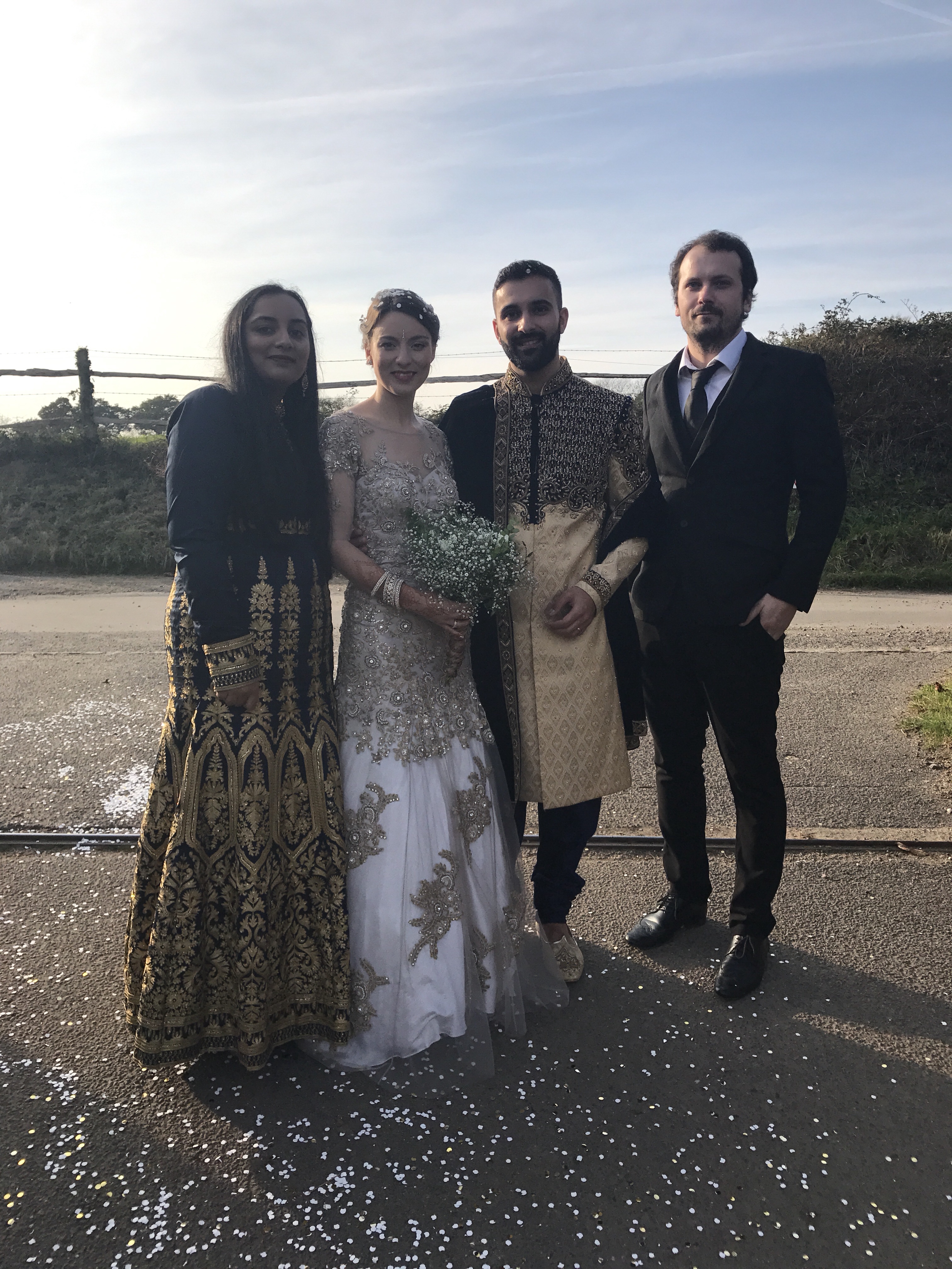 Bry wore a gorgeous east meets west outfit with the colours of a traditional English wedding outfit with Indian embroidery, amaaaaazing – and also very sparkly!